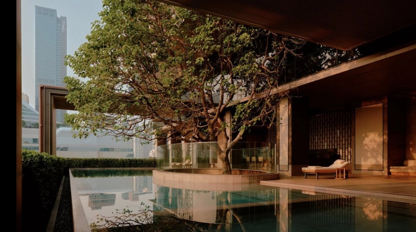 The details of the centuries-old Nai Lert Park Heritage Home mansion are organically combined with modern elements in the hotel project. Antiques and products from local artisans highlight the elegance and simplicity of Aman’s corporate identity. Symbolizing the origins of the hotel, the central element is the majestic 100-year-old Sompong tree, which forms the courtyard of the building, framed by roots, and impresses with its elliptical emptiness. The Aman Spa and Wellness center with an area of 1.5 thousand square meters is open in this 52-room hotel. Numerous restaurants and places to relax, as well as the unique Aman apartments.
